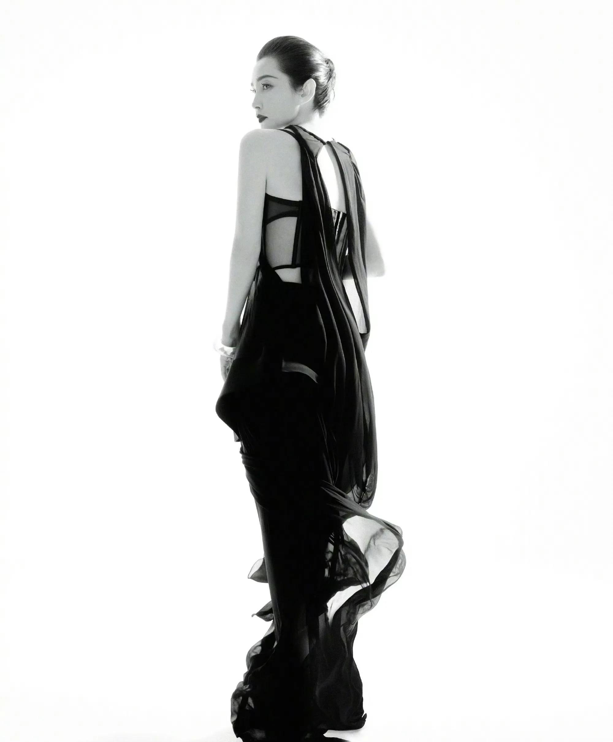 黑色的优雅,加上薄纱的灵动和神秘感,让她如女神降临,连背影都很迷人!